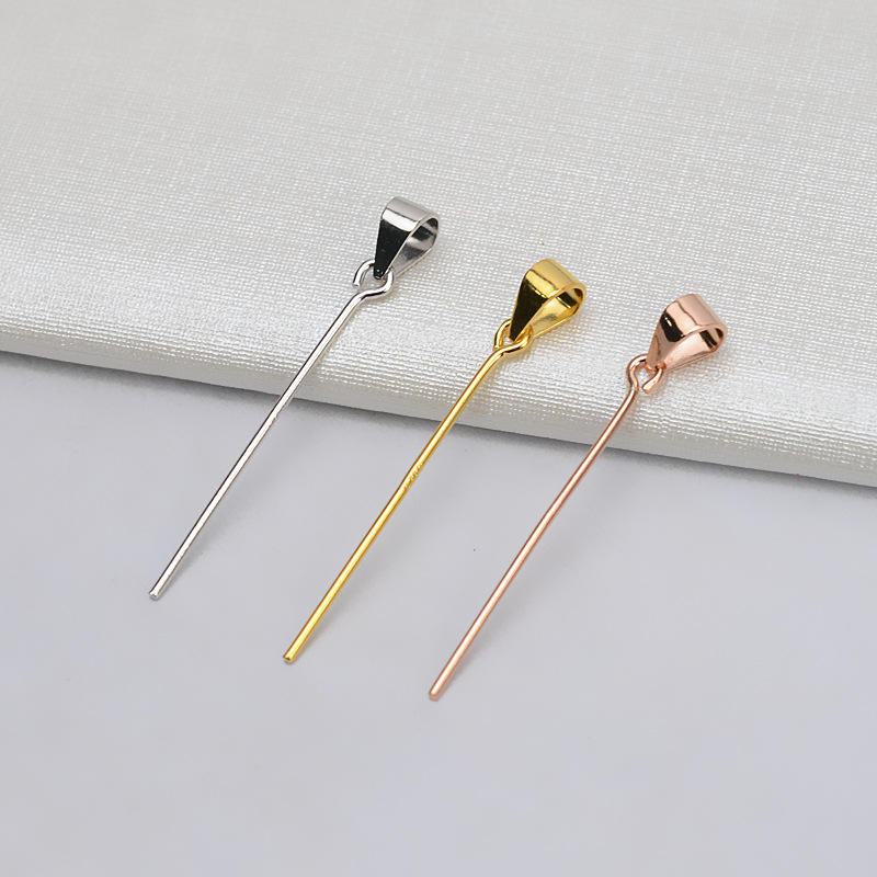 S925 Silver 9-Shaped Pin with Melon Seed Buckle DIY Female Necklace Pendant Jade 5 Accessories Empty Base-Jewelry Findings