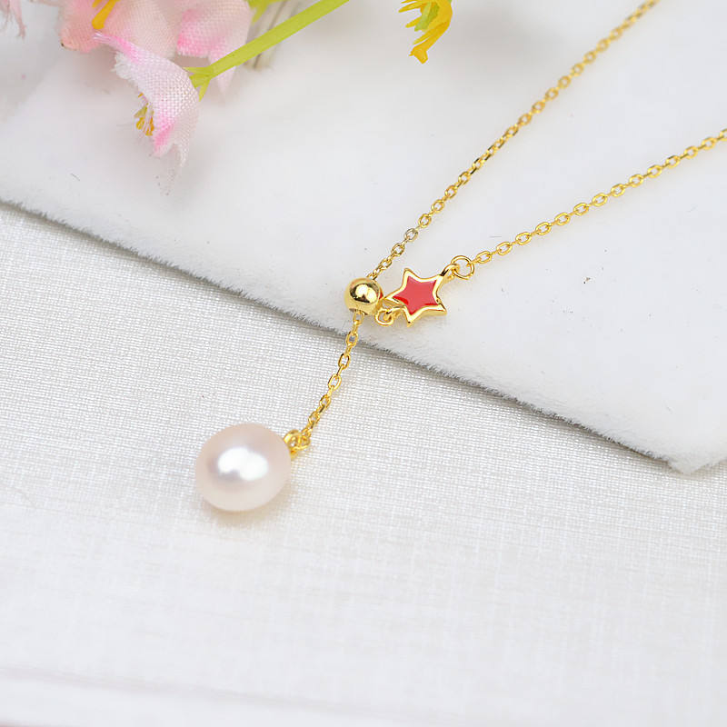 S925 Silver Adjustable Chain Necklace Five-Pointed Star Pendant Multiple Beads 7-15 Pearl Collarbone Accessory for Fashion