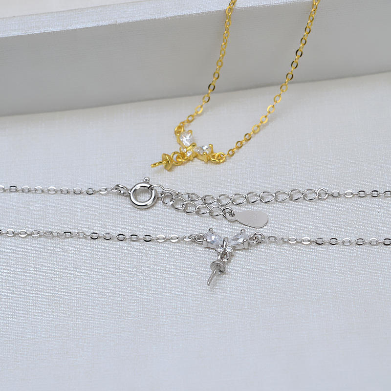 S925 Silver Bean Sprout Grass Necklace Open Ring Earrings Set DIY Accessories Pearl Jewelry Empty Holder Fashion Jewelry 1256
