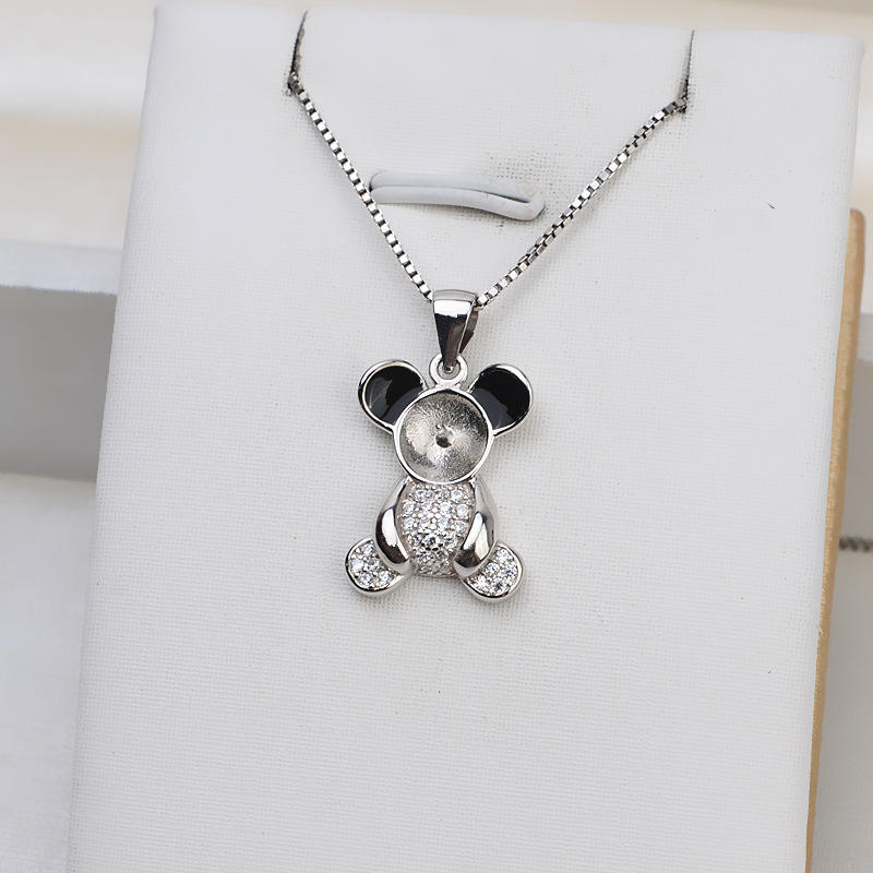 S925 Silver Bear Hair Pendant DIY Animal Pearl Accessory Trendy 8-9 Hanging Ornament Empty Support Jewelry Findings Components