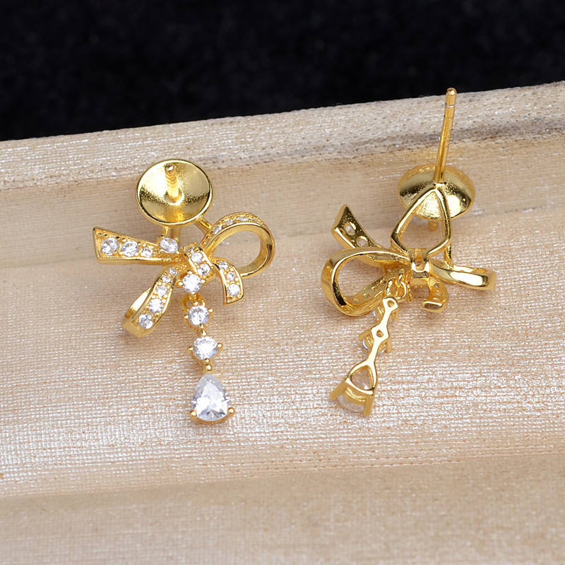 Wenchi S925 Silver Bow Ear Support 10-12mm DIY Accessories for Pearl Jewelry Semi Finished 15669 Jewelry Findings Components