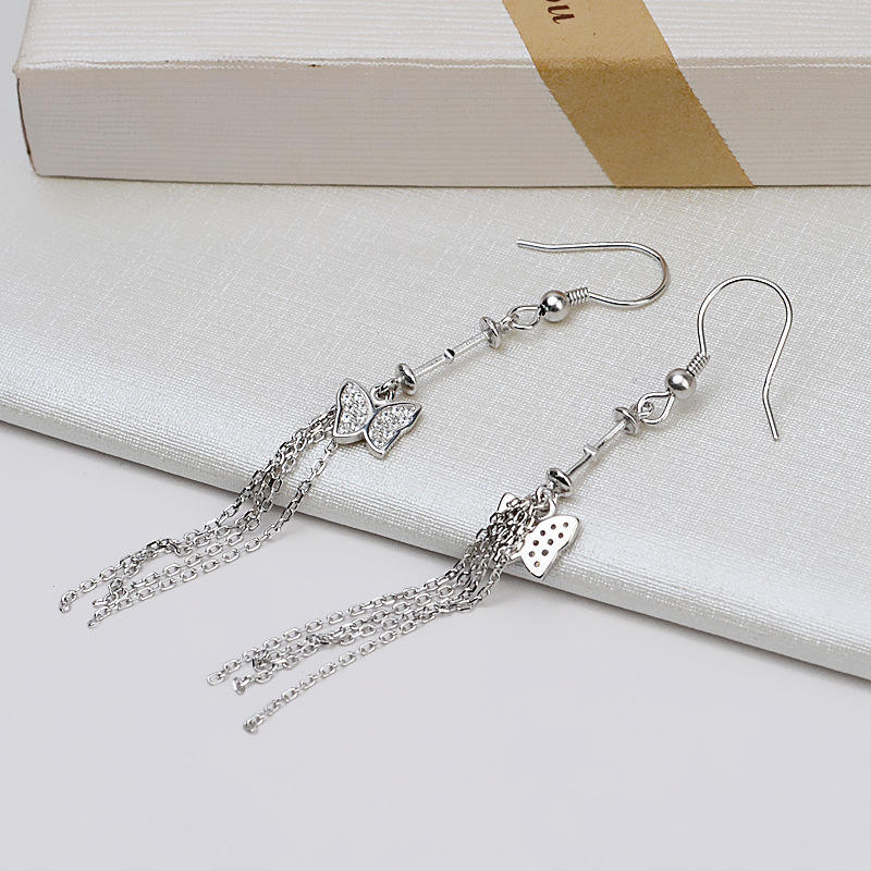 S925 Silver Bow Small Dangle Earrings for Women 5-5.5 Pearl DIY Jewelry Accessories with Empty Tray 1115