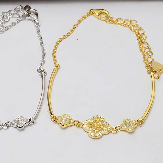 S925 Silver Bracelet for Women with Lucky Grass Flower Hand Rope Design 5.5-6.5 Pearl DIY Jewelry Accessories Empty Tray 539