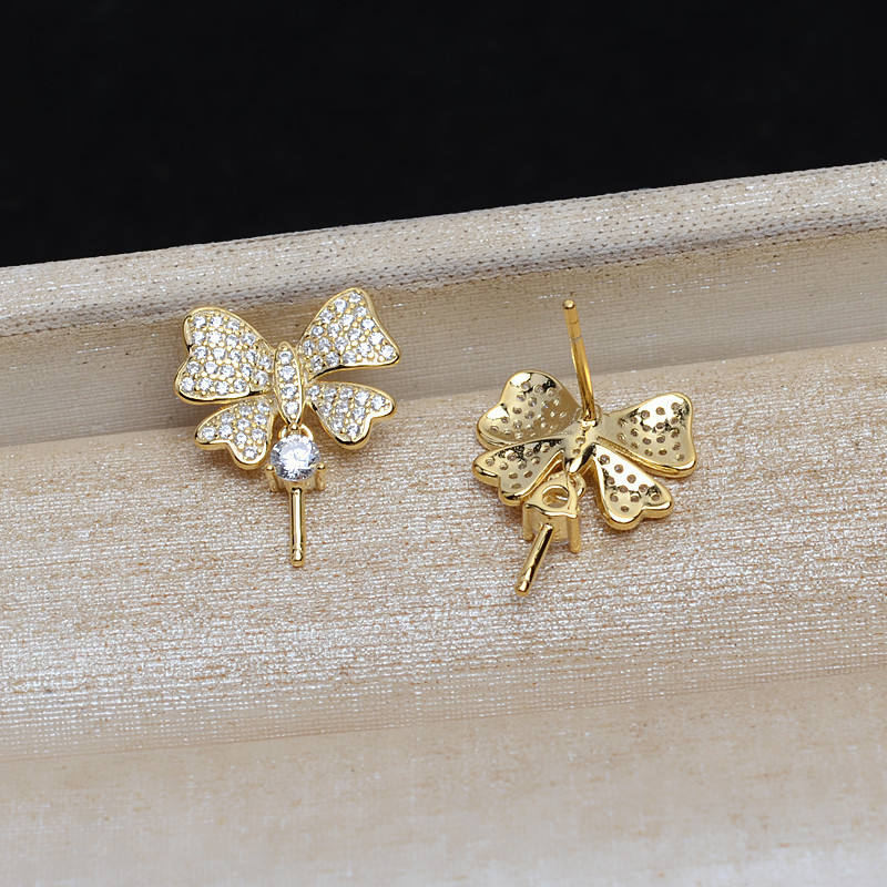 S925 Silver Butterfly Pendant and Pearl Set on 9-12 Hairpin DIY Accessories 4025-Fashion Stud Earrings with Earnail Set
