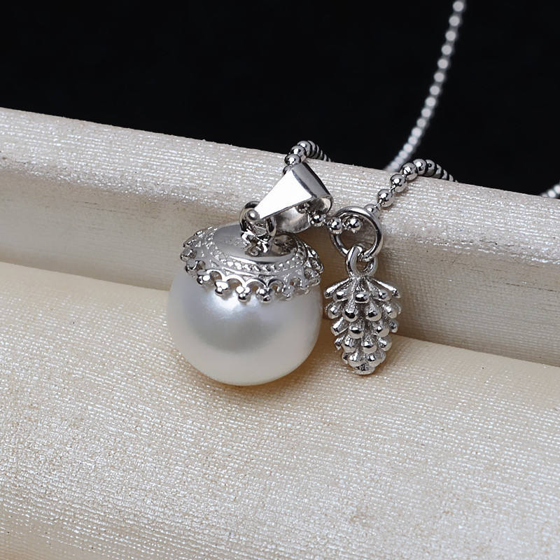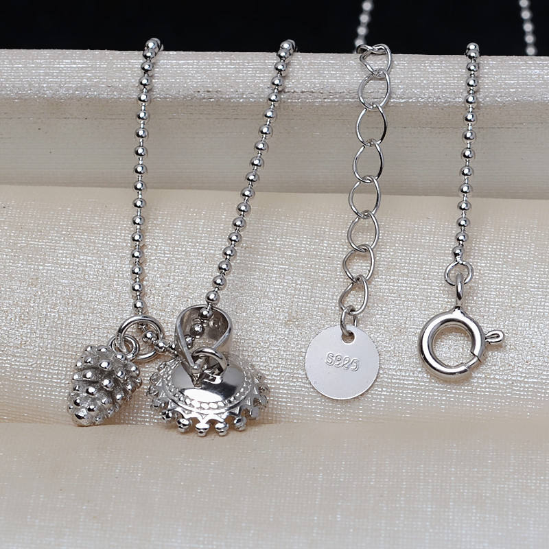 S925 Silver Chain Pine Cone & Empty Holder Necklace with Silver Pendant DIY Fine Jewelry 10-13 Pearl Accessories 3866