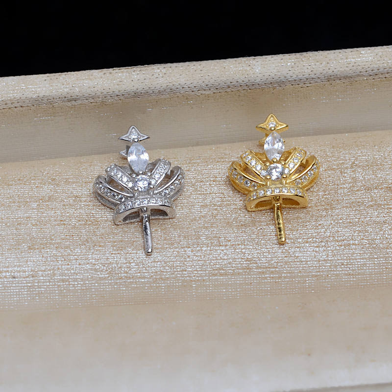 S925 Silver Crown Straight Needle Pendant Female DIY Pearl 13-16 Accessories Empty Stand JG5225 with 18K Plating Color