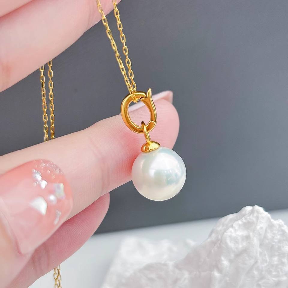 S925 Silver DIY Accessories Gorgeous Jade Necklace Pendant 8-13mm Beads 31175 Buckle Empty Stand Premium Pearl Pendants Charms