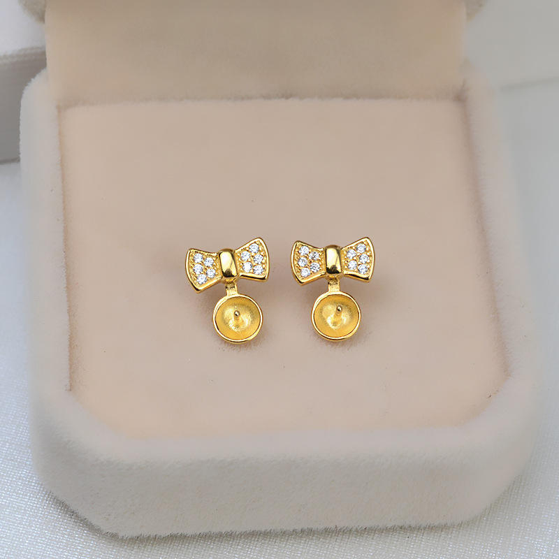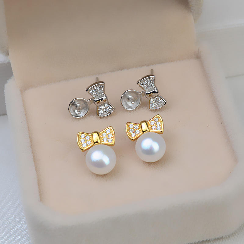 S925 Silver DIY Accessories Trendy 8-9 Small Pearl Earrings with Butterfly Knot and Empty Stand 1062 Stud Earrings Pendant Set