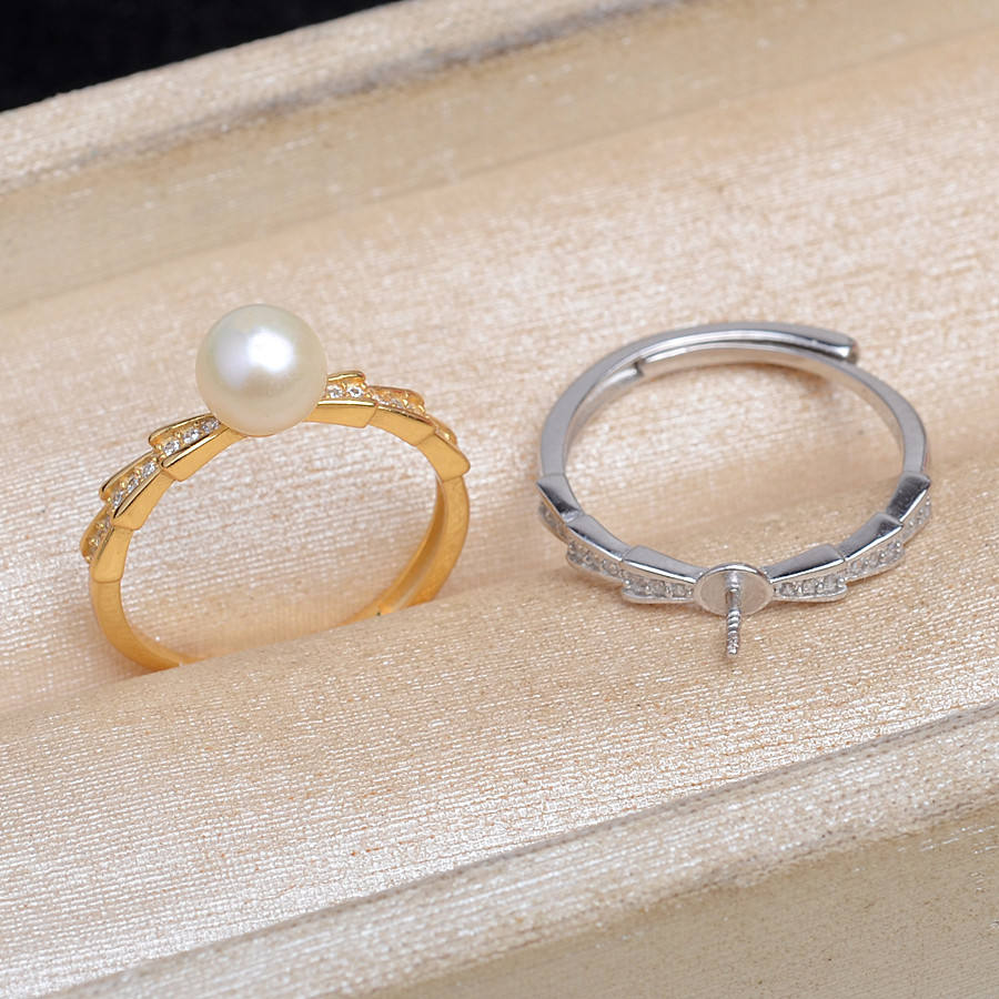 S925 Silver DIY Accessory Loose Pearl Split Ring Holder 5811 Snake Bone Finger Ring Size 6-8