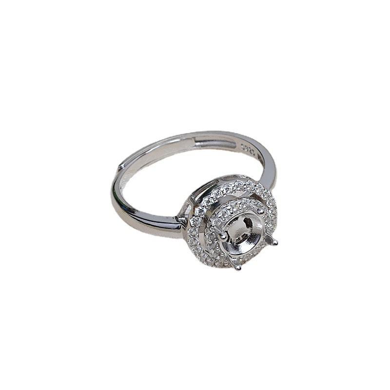 S925 Silver DIY Accessory Rotatable Pendant Ring Set 5.5-6 Needleless Beeswax Pearl Hollow Holder Jewelry Findings Components