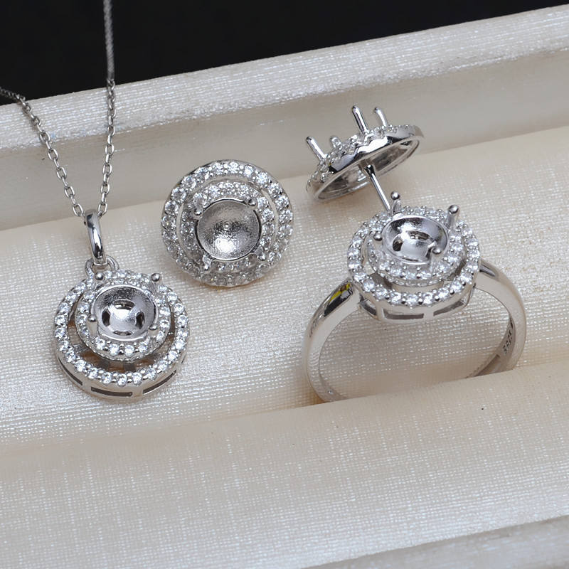 S925 Silver DIY Accessory Set Rotatable Pendant Ring with 5.5-6 Needleless Beeswax Pearl Hollow Holder Fashion Jewelry 4045
