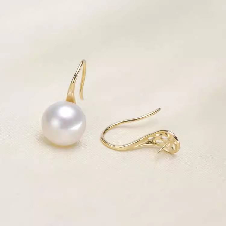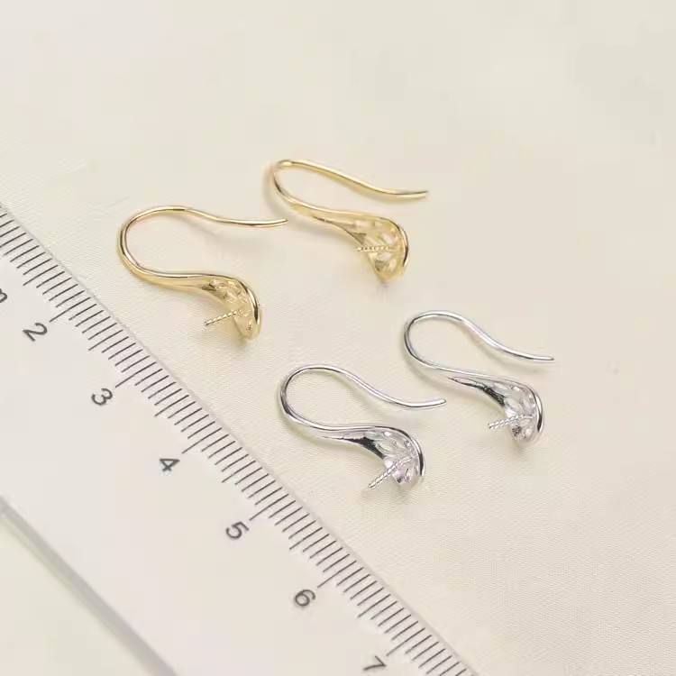 S925 Silver DIY Pearl Accessories 2445 Hollow Bracket Ear Hook with 9-11mm Flat Beads for Nail Earrings