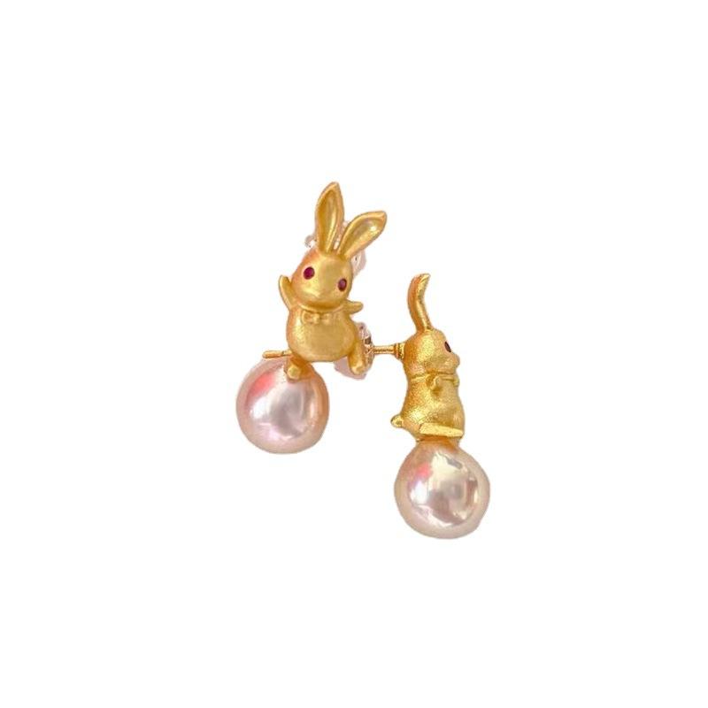 S925 Silver DIY Pearl Accessories 8-10mm Round Beads Female Earnail with Empty Support Rabbit 21815 Stud Earrings
