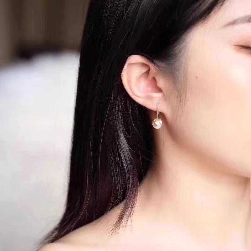 S925 Silver DIY Pearl Accessories 8-9mm Round Bead Ear Nail Hollow Bracket Concealer with 21705 Elegant Pearl Earrings