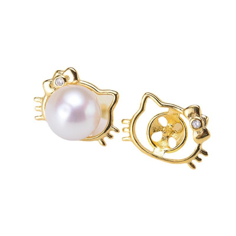 S925 Silver DIY Pearl Accessories Cat Style Empty Tray for Earrings with 5-7mm Round Beads 20726 Fashion Stud Jewelry