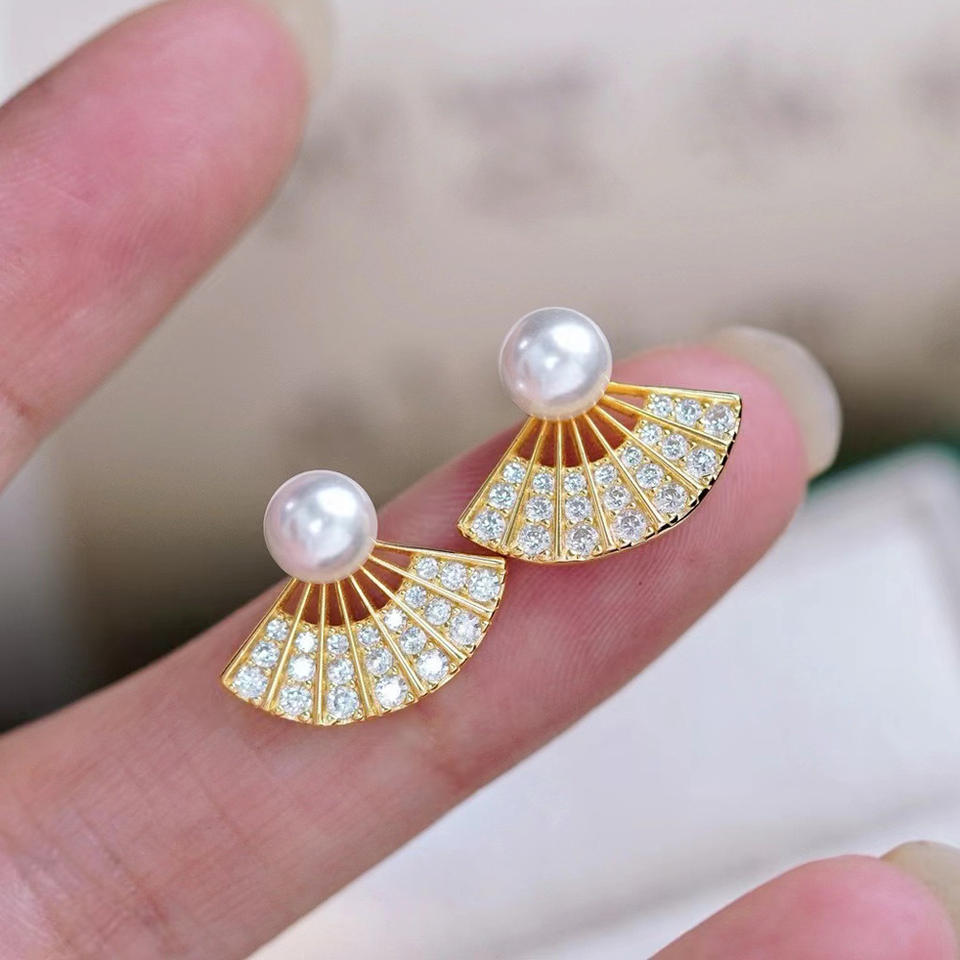 S925 Silver DIY Pearl Accessories Empty Support Fan 6-7mm Round Beads 22253 Silver Jewelry Earrings