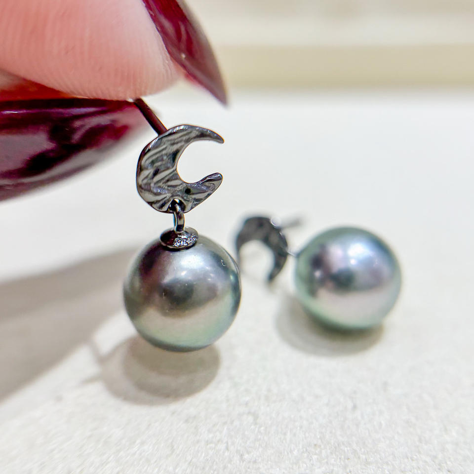 S925 Silver DIY Pearl Accessories Empty Moon Jewelry Earrings with 7-10mm Round Beads 22210