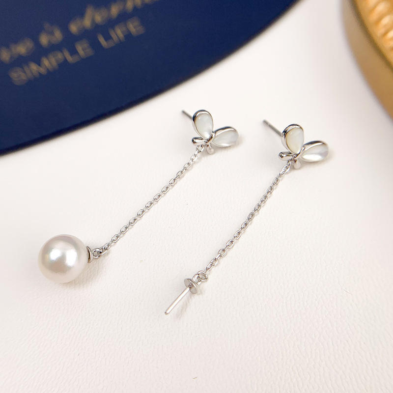 S925 Silver DIY Pearl Accessories Empty Tray Butterfly Silver Jewelry Earrings 7-10mm Beads Product Pearl Earrings Item 20878