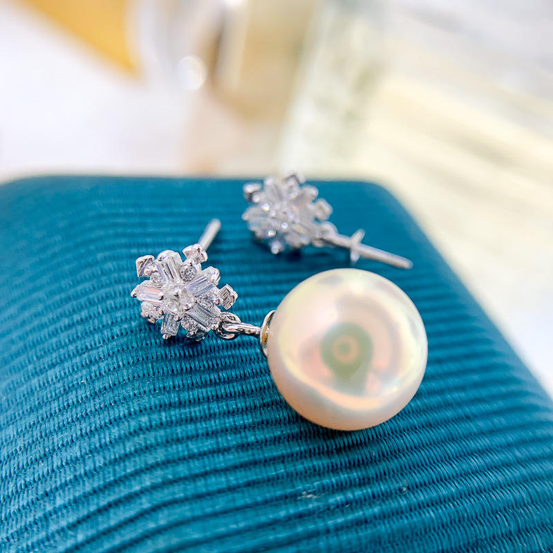 S925 Silver DIY Pearl Accessories Empty Support Snowflake Silver Earrings with 8-12mm Round Beads 21111 Model