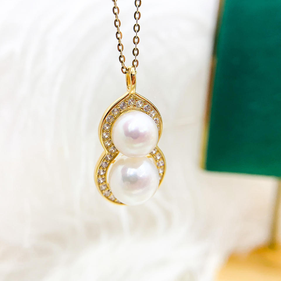 S925 Silver DIY Pearl Accessories Empty Stand Double Bead Pendant for Women 8-10mm Flat Beads Pearl Pendants Charms 30970