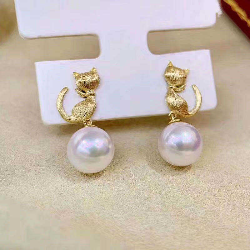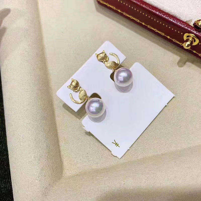 S925 Silver DIY Pearl Accessories Empty Tray Cat Style Jewelry Earrings with 8-10mm Round Beads 20509