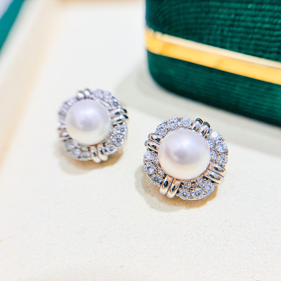 S925 Silver DIY Pearl Accessories Empty Earnail Tray with 7-9mm Round Beads Fashion Stud Earrings 22099