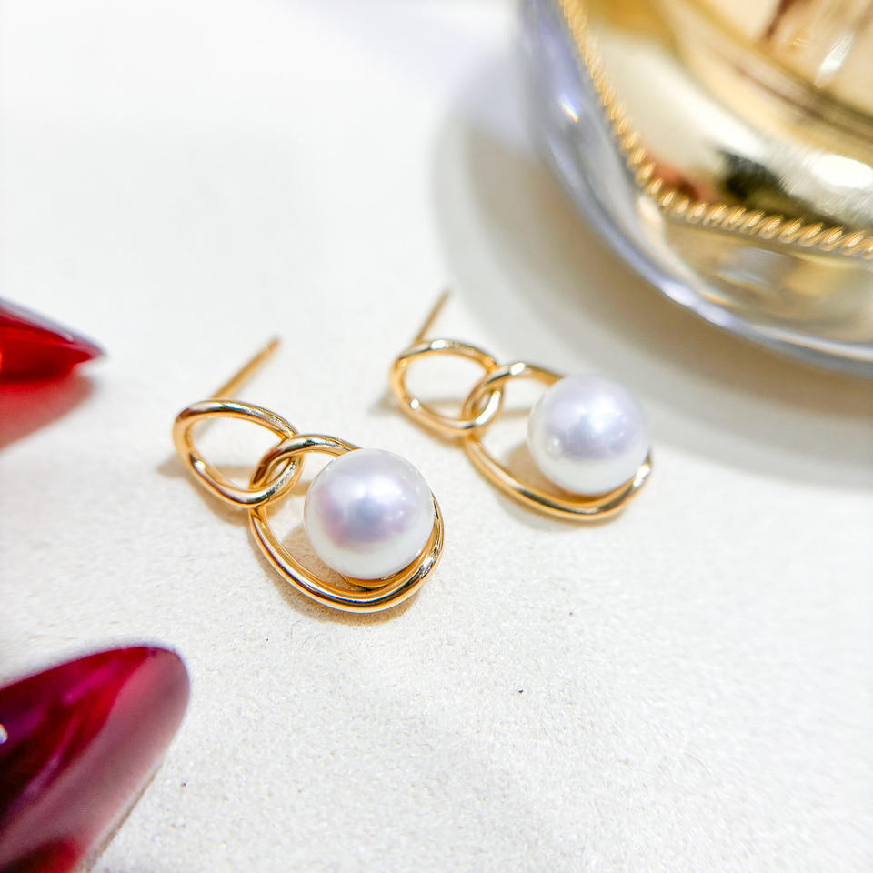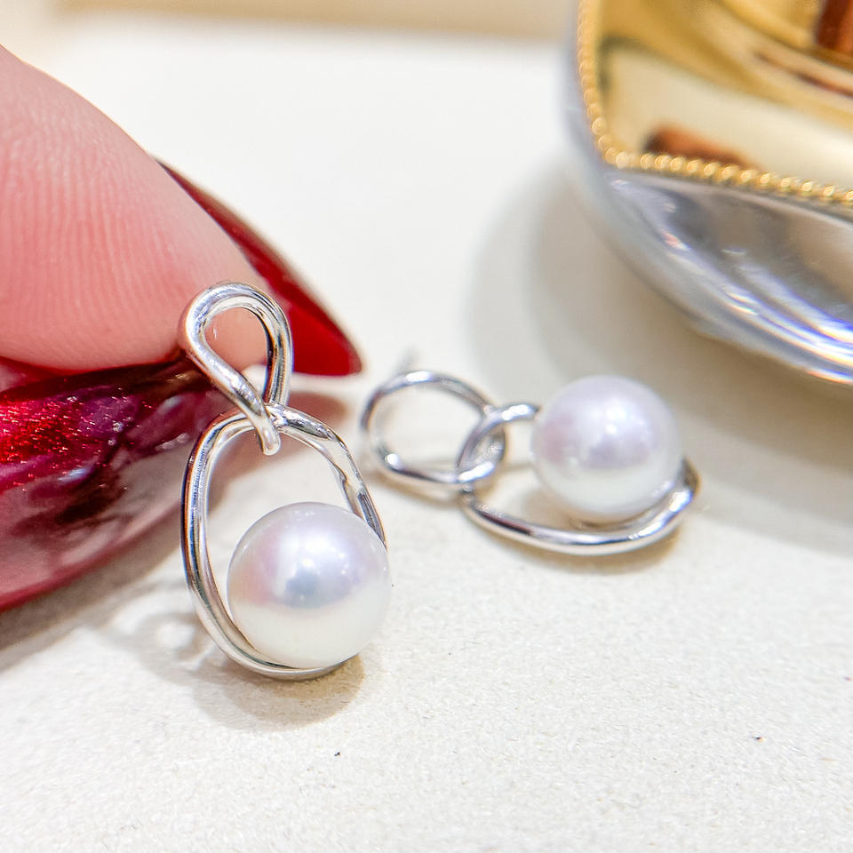 S925 Silver DIY Pearl Accessories Empty Tray with 7-8mm Round Beads for Fashion Silver Jewelry Earrings 22096