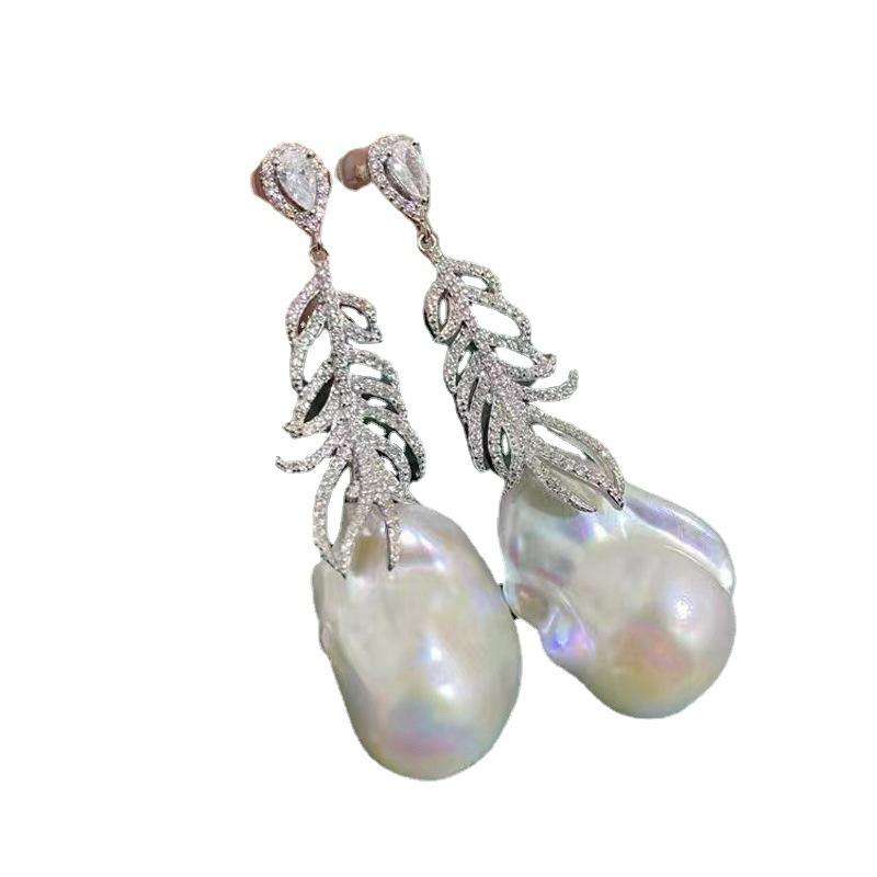 S925 Silver DIY Pearl Accessories Empty Support Feather Silver Jewelry Ear Buckle 10-18mm Beads 21777 for Ear Nails Earrings