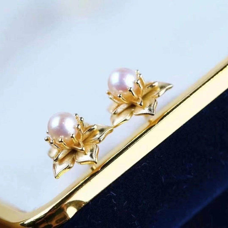 S925 Silver DIY Pearl Accessories Empty Tray with 7-8mm Round Beads Small Flower Earrings 20868 Model