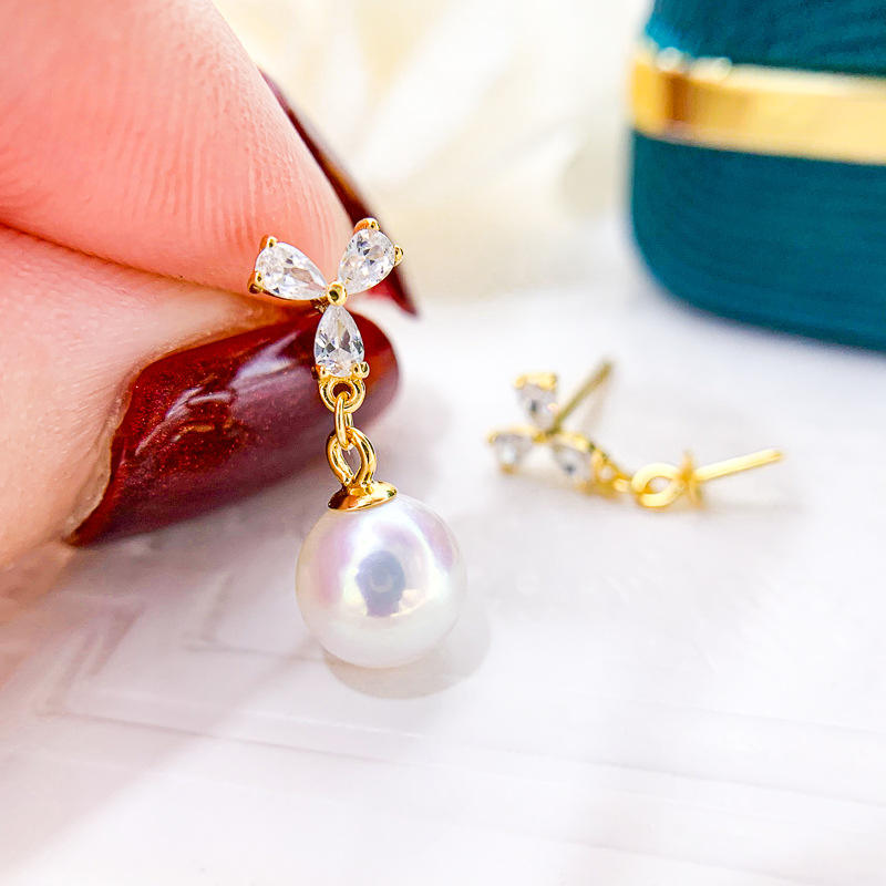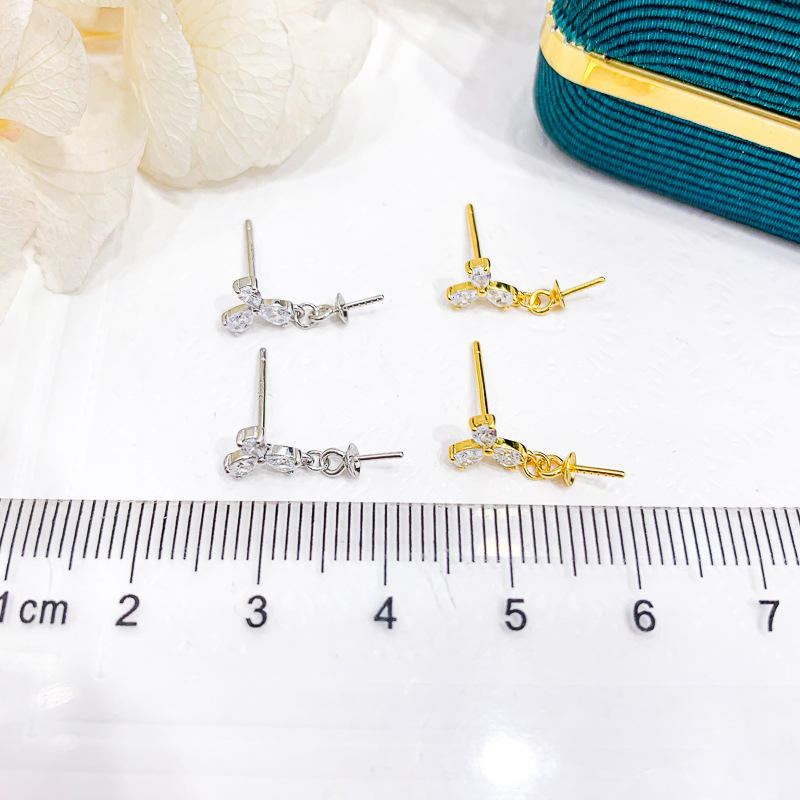 S925 Silver DIY Pearl Accessories Fashionable Silver Earrings with 7-11mm Round Beads and Empty Stand 21102 Model
