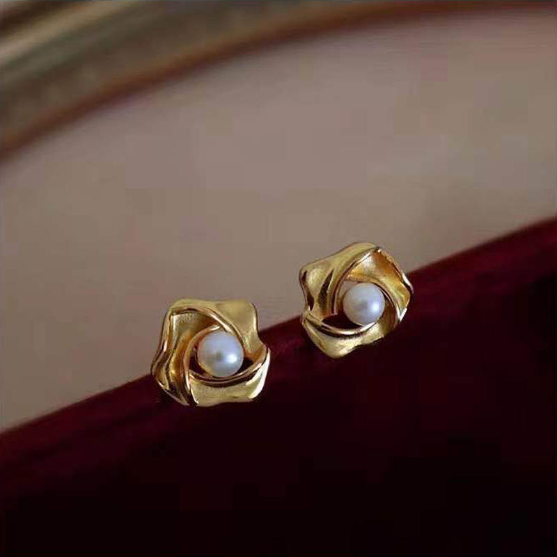 S925 Silver DIY Pearl Accessories Rose Silver Jewelry Earrings with 5-6mm Round Beads 20634 Empty Tray Elegant Fashion Studs