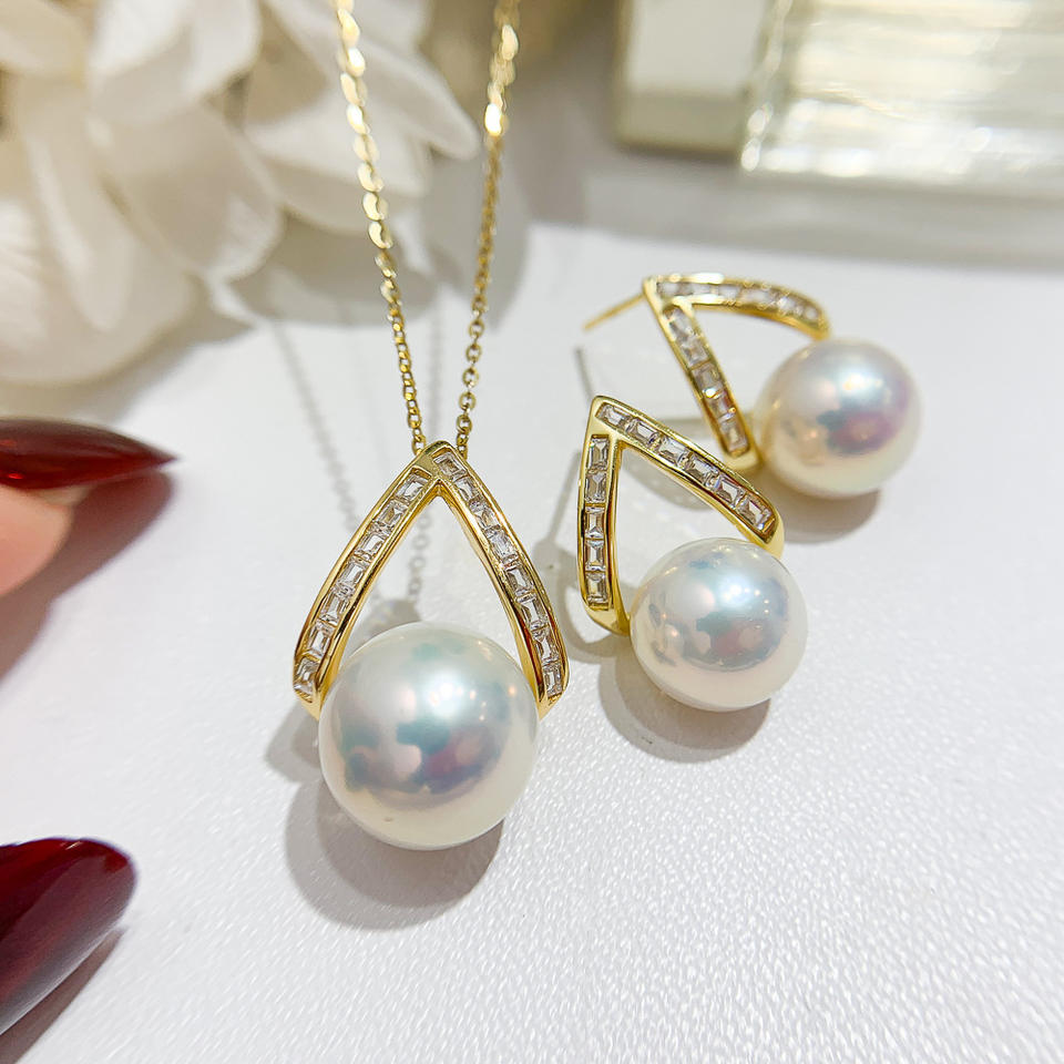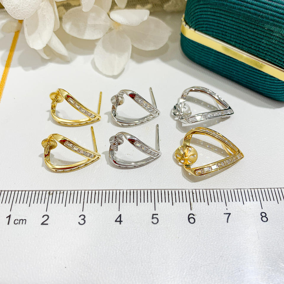 S925 Silver DIY Pearl Accessories Set Empty Tray with Three Diamond Gold Silver Pendant Crystal Earrings Silver Jewelry 9342