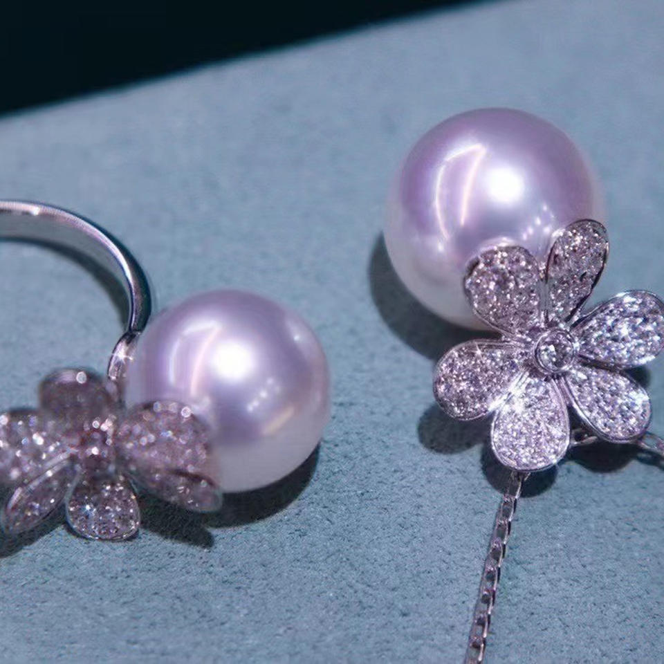 S925 Silver DIY Pearl Accessories Set 8-10mm Beads Explosive Triangle Ring Pendant & Ear Buckle Fine Jewelry for Party