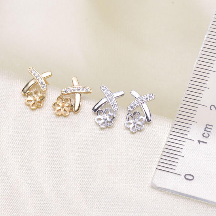 S925 Silver DIY Pearl Accessory Fine Cuff Links & Tie Clips Empty Ear Nail Holder