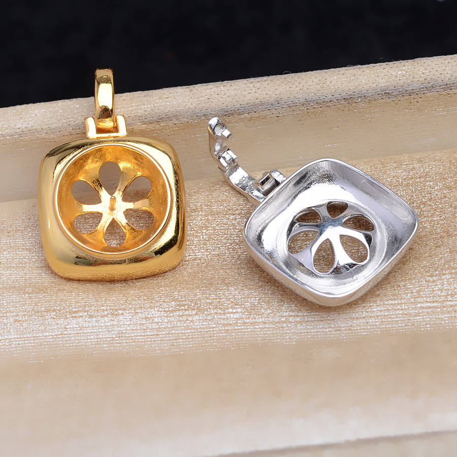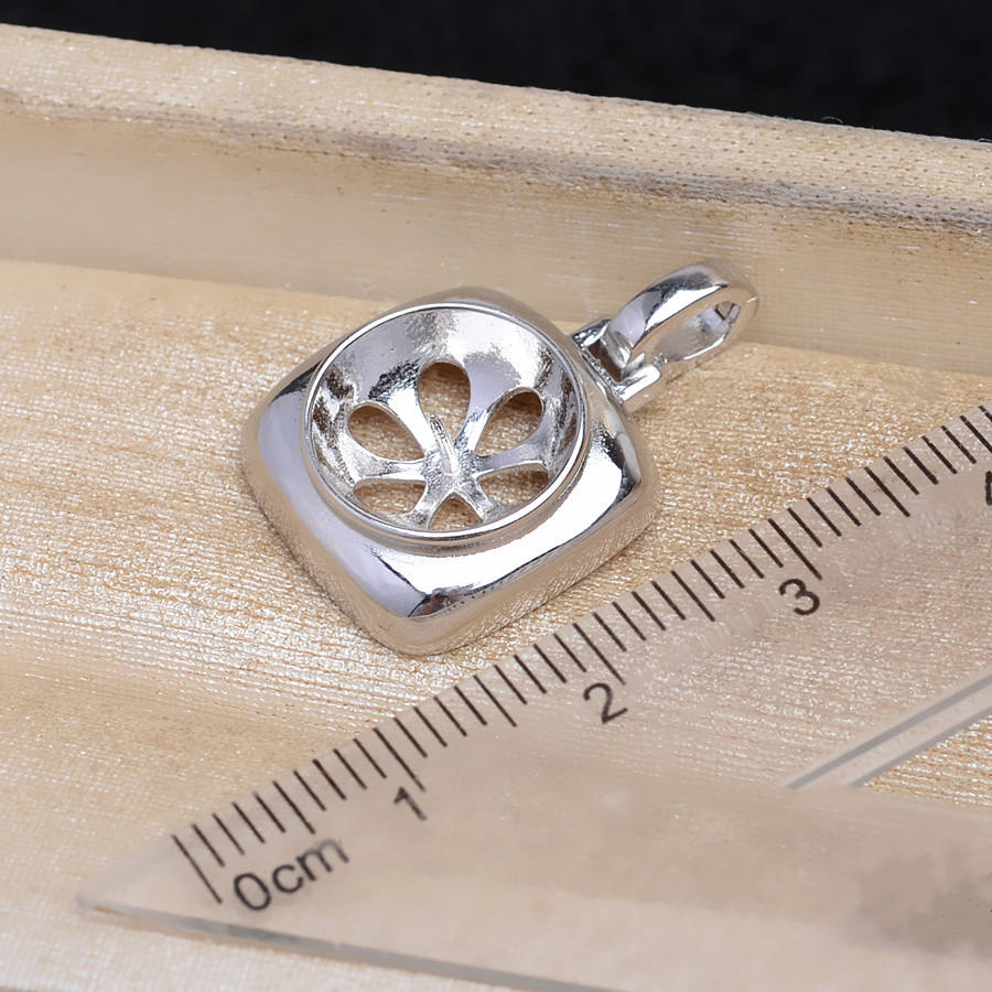 S925 Silver DIY Pearl Accessory Simple Square Universal Buckle Pendant Empty Holder 12-13mm Loose Pearls 5714