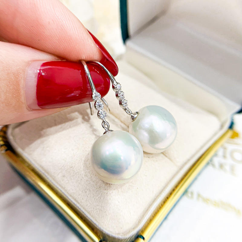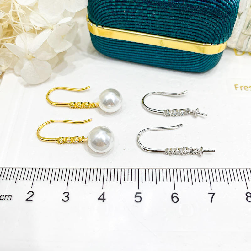 S925 Silver DIY Pearl Earrings Accessory Simple Zircon Silver Ear Ring with 8-12mm Round Beads 21285