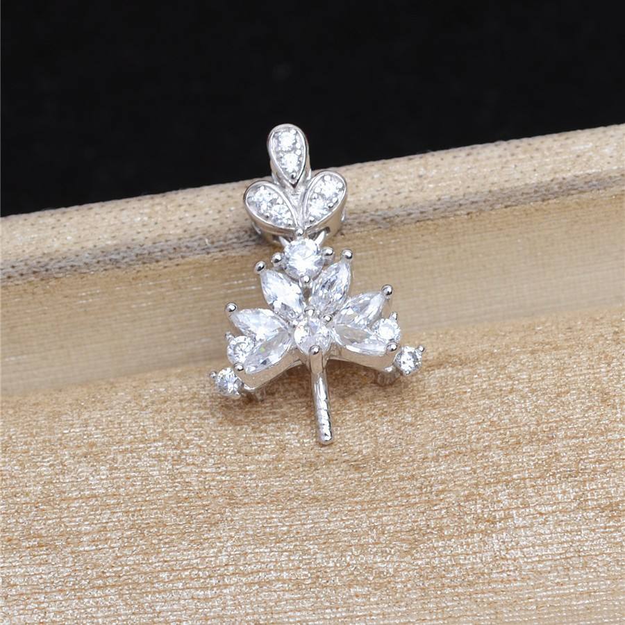 S925 Silver DIY Pearl Ice Snow Pendant Semi-Finished Accessory Holder Small Leaf 12-16 Pearl Holder Jewelry Findings Components