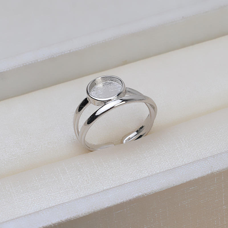 S925 Silver DIY Pearl Ring Accessories Open 8mm Female Jade Ring Holder Needle-Free Stylish Fashion Rings for Women