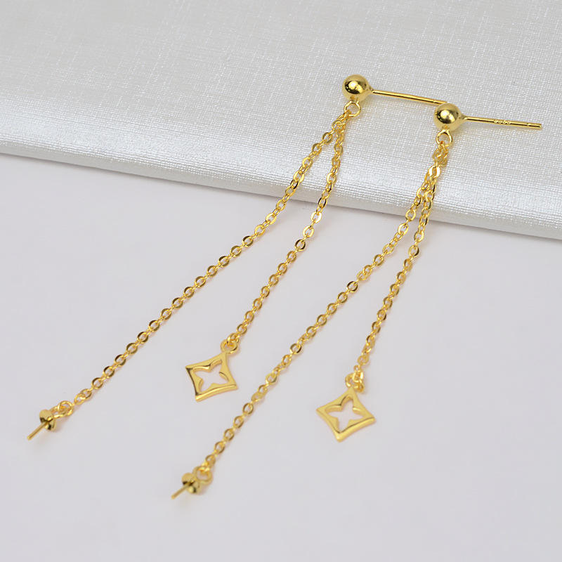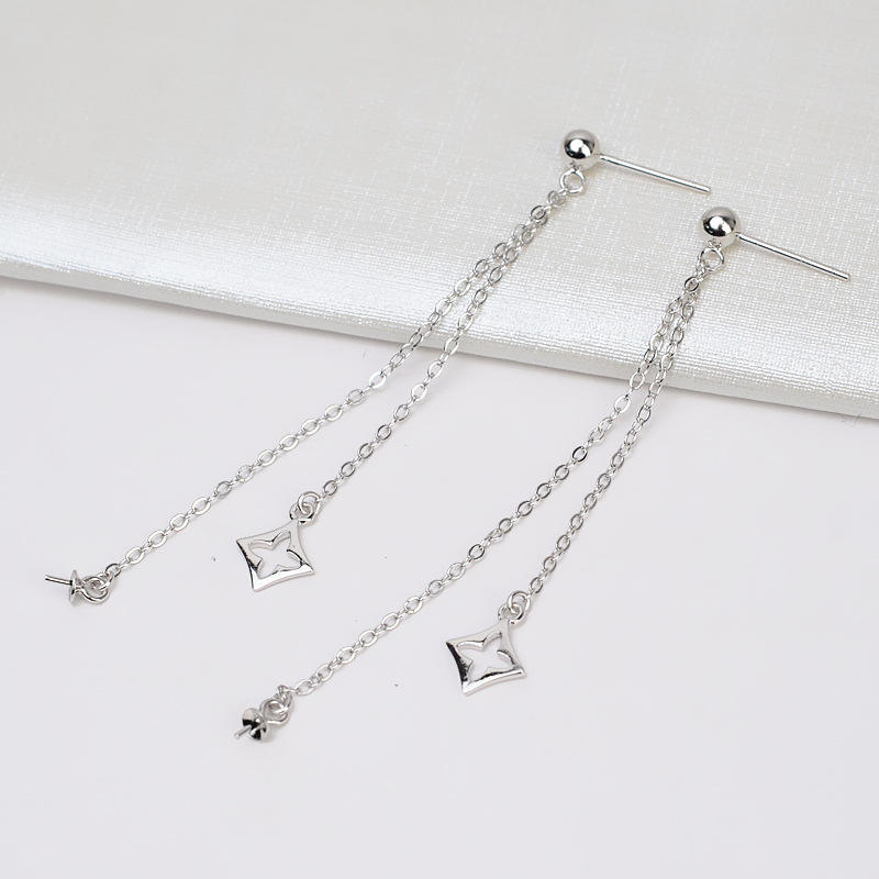 Wenchi S925 Silver Double Chain Multi Bead Long Tassel Women Fine Dangle Pearl Earrings Empty DIY Accessories Holder Model 16164