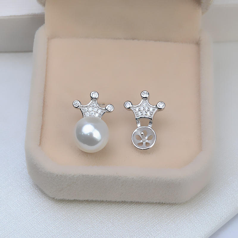 S925 Silver Double Pearl Earrings with 15.5 Ma Bei 6271 Ear Decoration DIY Accessories Empty Holder
