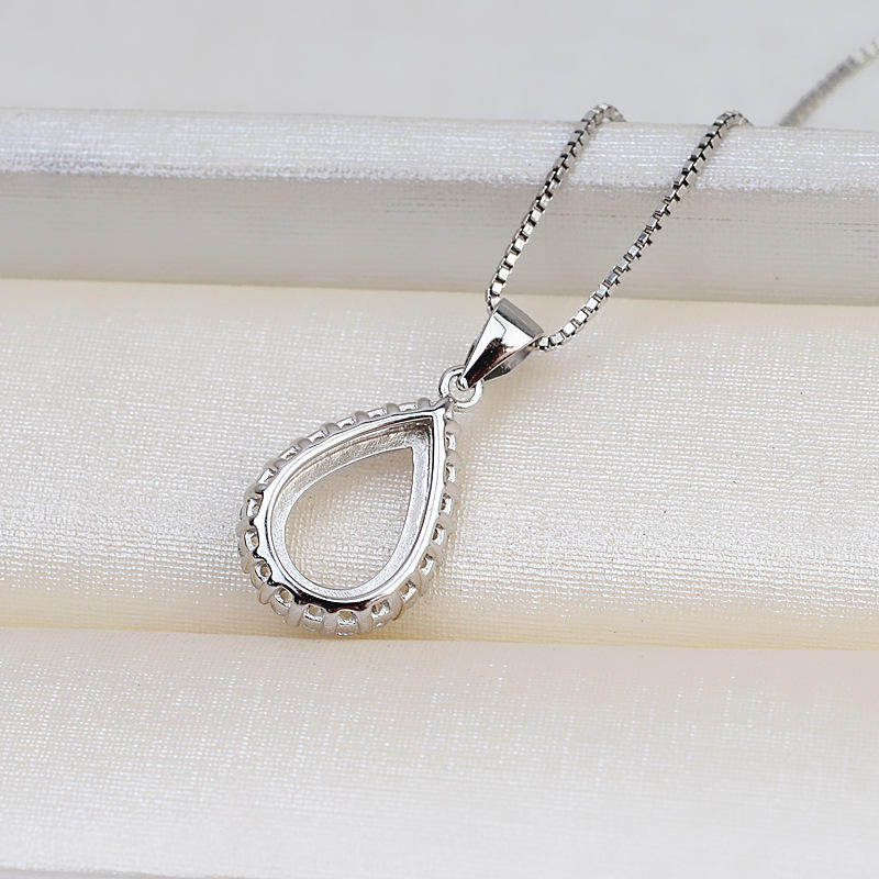 S925 Silver Droplet Pendant 8x12mm Hollow Setting For Pearl Or Jade Jewelry Findings Component