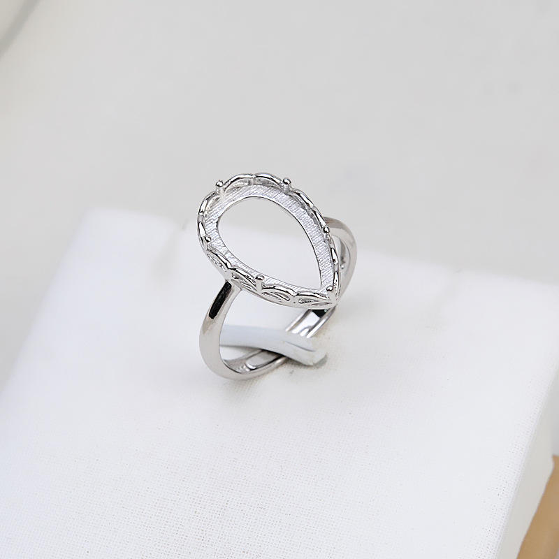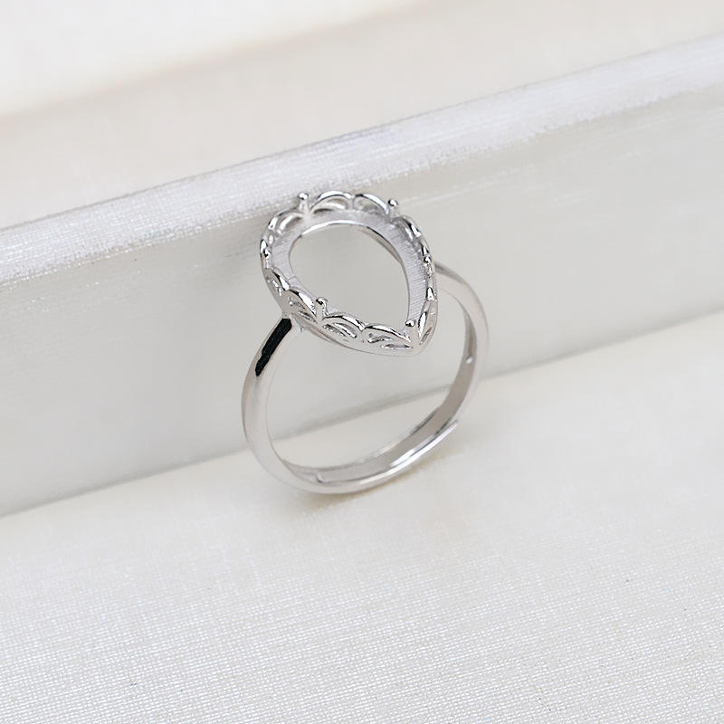 S925 Silver Droplet Shape Hollow Ring Holder 9.5x16mm For Jade Pearl Horse Shell Jewelry Findings Component