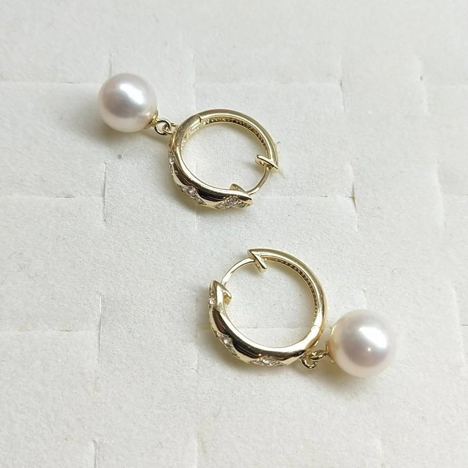 S925 Silver Ear Studs Round Flawless 8-9mm Seedless Freshwater Pearls High Quality Ear Clips