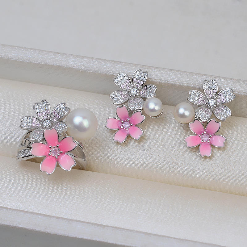 S925 Silver Epoxy DIY Fine Jewelry Set Includes Pendant Ring Necklace 8-18mm Fetal Hair Pearl Hollow Trendy 2708 Accessory