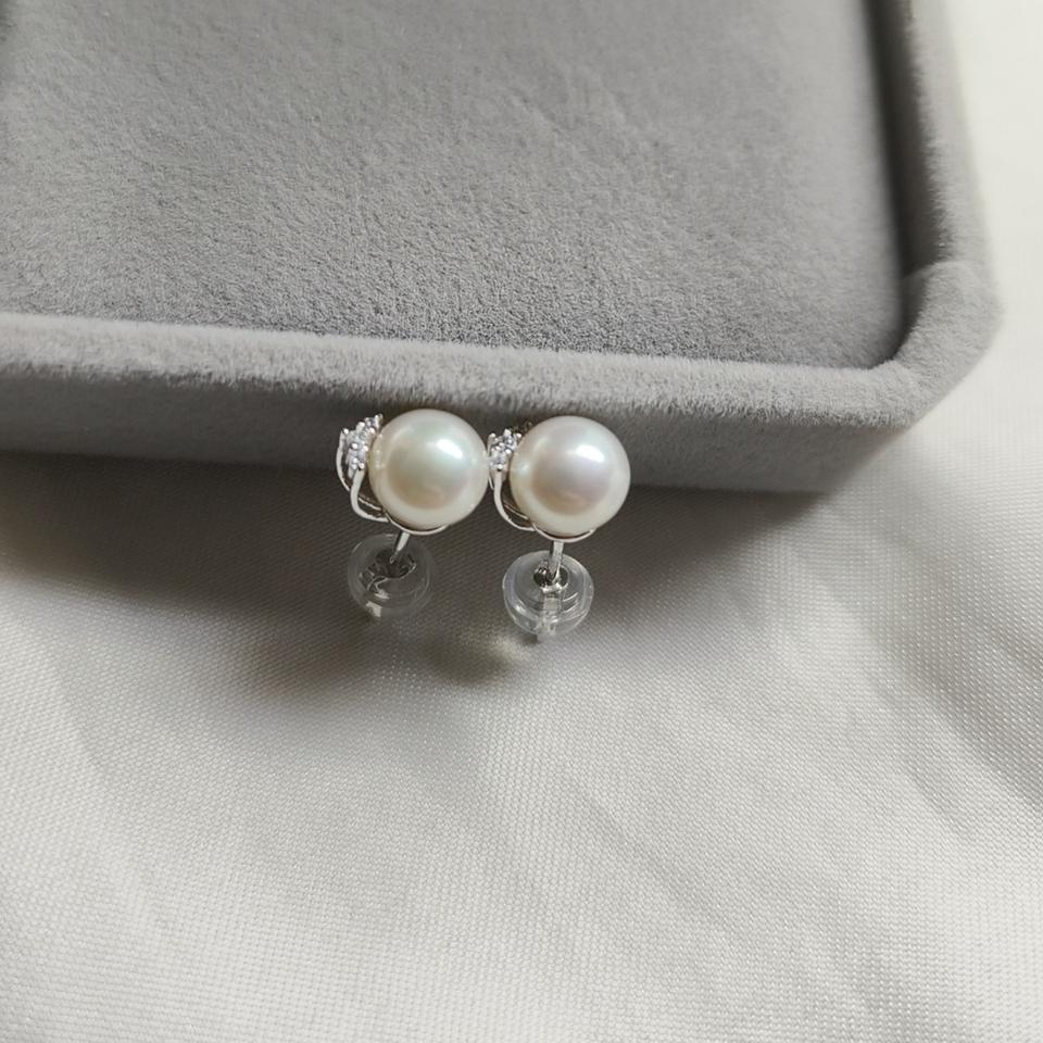 S925 Silver Eyelashes Curved Eyes Elegant Compact 7mm Round Flawless Freshwater Pearl Earrings Bright Earrings
