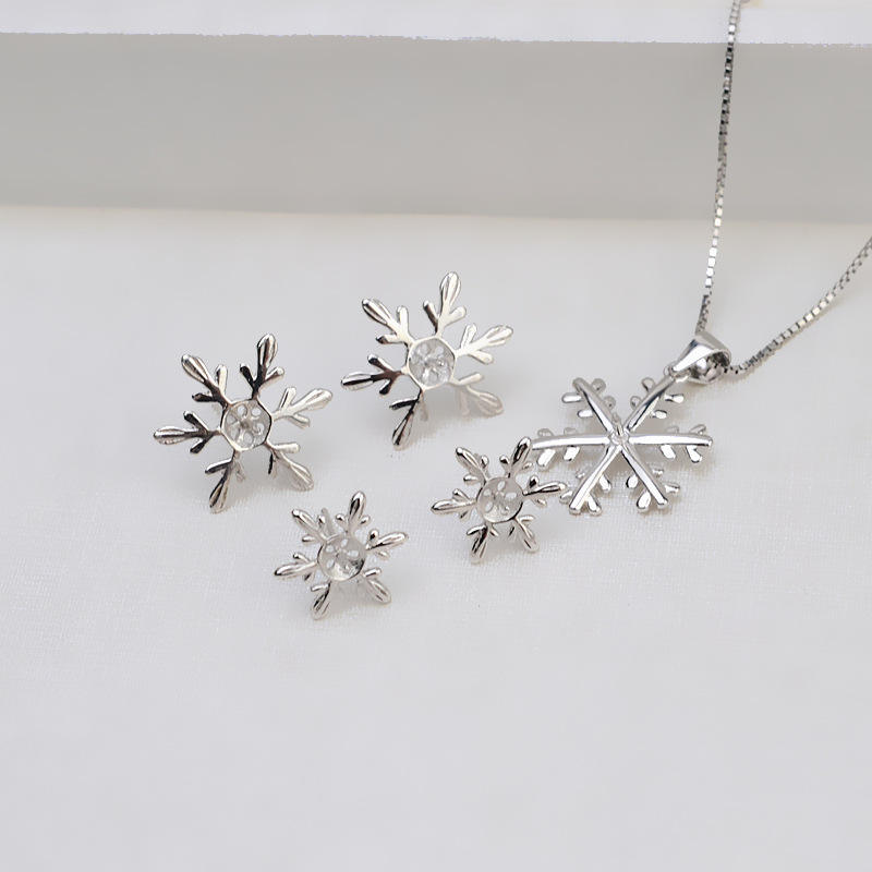 S925 Silver Face Snowflake Earpin Female Pendant DIY Pearl Jewelry Earrings Accessories Fine Jewelry Sets Empty Tray Tide 1310