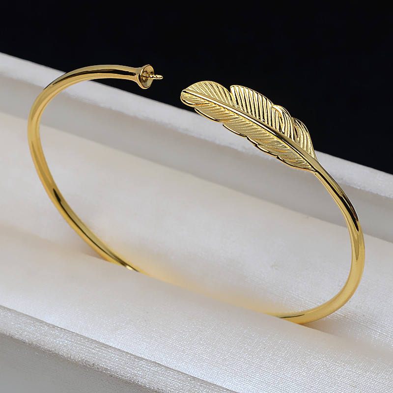 S925 Silver Feather Hollow Bracelet with 8-12 Pearl Women's DIY Jewelry Accessories Empty Tray 3337