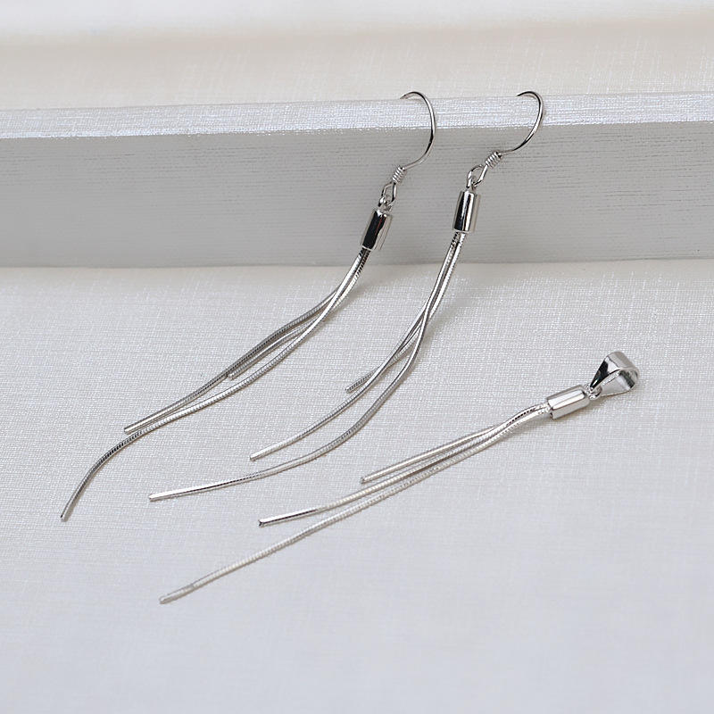 S925 Silver Female 3 Bead Earrings Pendant Necklace Set DIY Pearl Jewelry with Chain Fashion Dangle Accessory