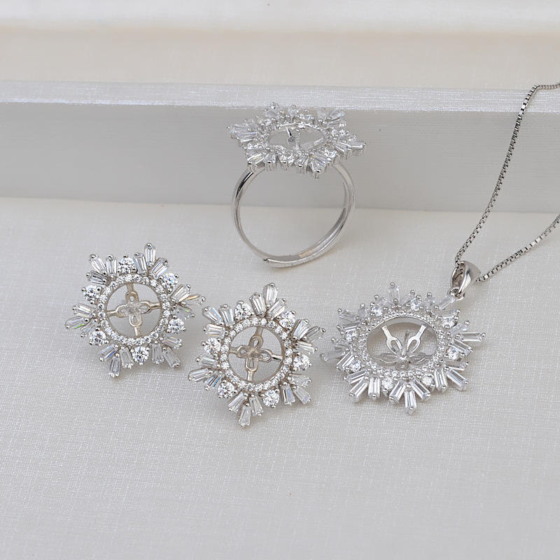 S925 Silver Female Earring & Ring Set Sunflower Snowflake Pendant with Empty Stand DIY Semi-Finished 1303 Fashion Jewelry