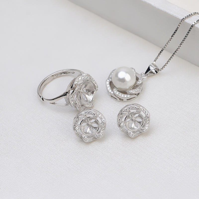 S925 Silver Fine Jewelry Set for Women DIY Pearl Accessories Including Open Ring Pendant Earrings Livering Ring 1320 Empty Stand